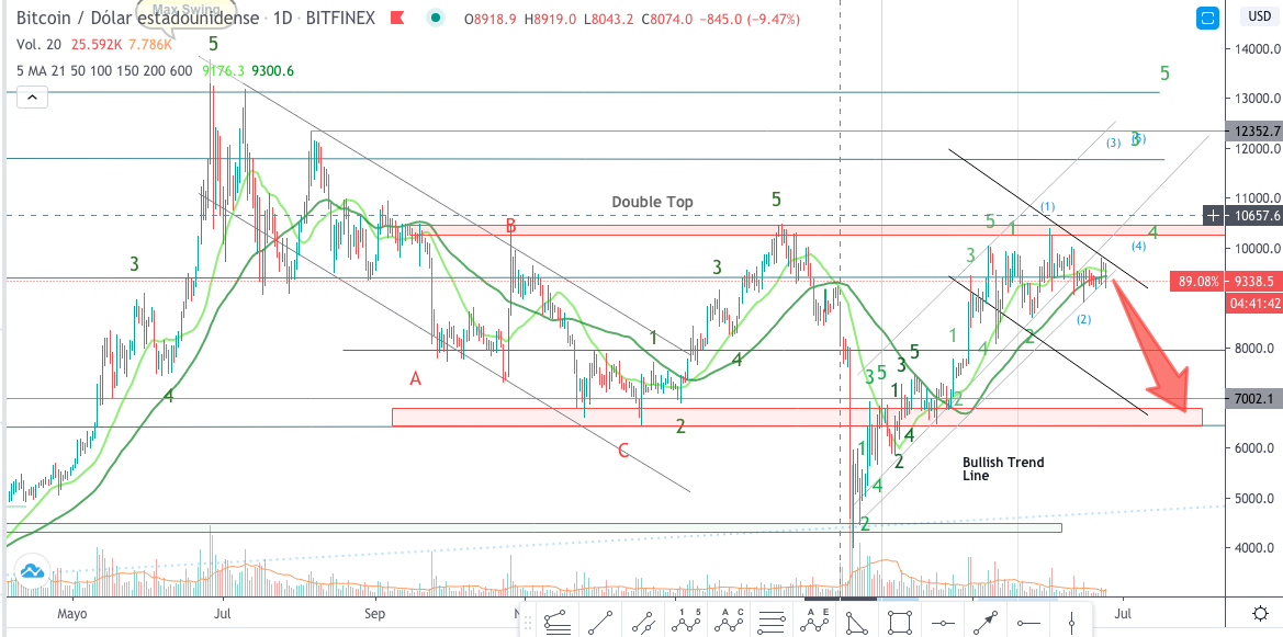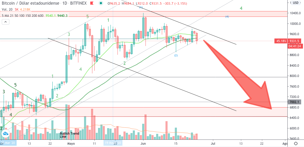 Bearish- If the price breaks, the downward channel could validate the downward channel and the price could reach $ 6500 in weeks.