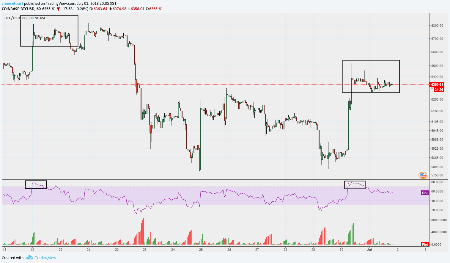 If you turn your attention to the Bitcoin chart in the last few days, the RSI is overbought once again. So what does this mean?
