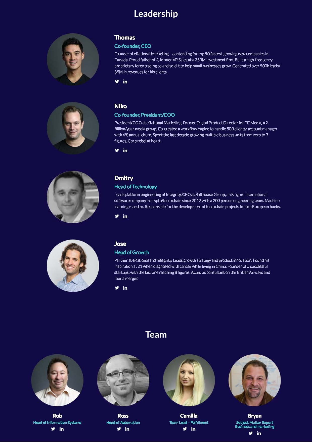 Integrity's mission is to provide small business growth on demand by building an ecosystem of experts, freelancers and providers of sustainable blockchain-based technology. Small business owners can focus on what they do best, and let Integrity do the rest.