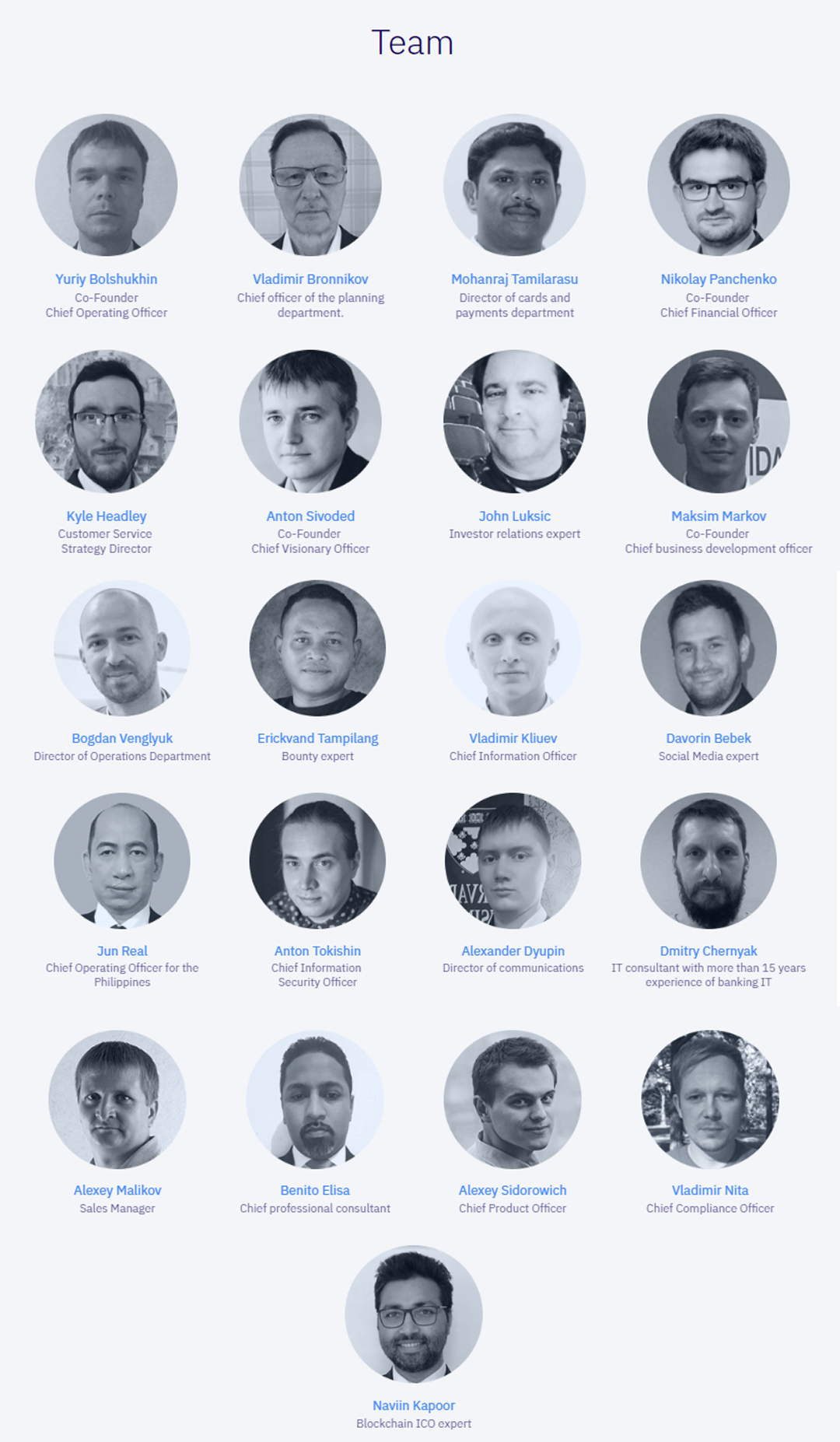 To conduct transactions in cryptocurrencies there will be virtual cards: Visa, Mastercard and UnionPay. Furthermore, there will be mobile services such as Apple Pay, Samsung Pay and Android Pay. It will let you pay via common POS-terminals supporting PayPass, payWave, QuickPass, websites and also allows to withdraw or input cash in ATMs. - Debit Cards