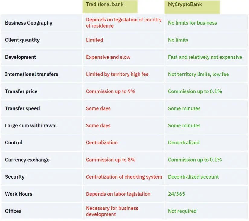 MYCRYPTOBANK VS TRADITIONAL BANK