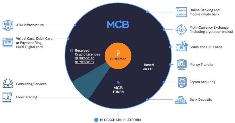 Upon completion of ICO, MyCryptoBank (MCB) tokens will be used within the internal ecosystem.