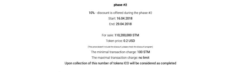 Number of tokens. STM tokens will be issued on Ethereum platform. The number of STM is strictly limited and is 186,000,000 tokens. In future STM will not be generated.