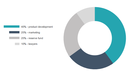 - 40% of the ICO investments we will spend on the development of the product. Main objects of expenditure are: staff recruitment, staff payments, purchase and maintenance of equipment.