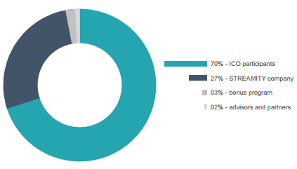 - 2% advisors and partners. The advisory and partner stock “STREAMITY” will be blocked for one year according to smart-contract conditions.