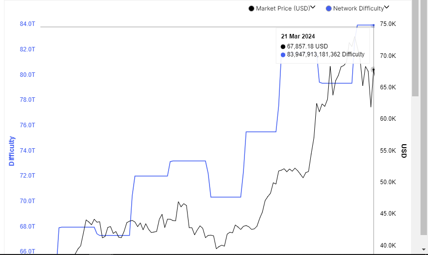 Bitcoin mining difficulty has recorded its highest level of 83,947,913,181,362, a move indicating increasing interest ahead of the halving