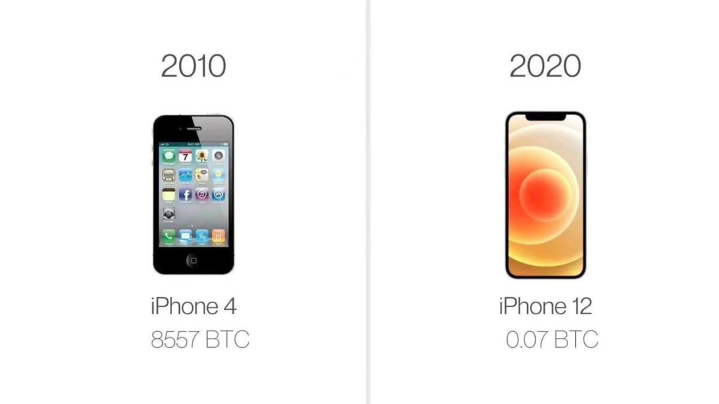 iPhone prices have fallen by 122 thousand times in 10 years... if you count in BTC.