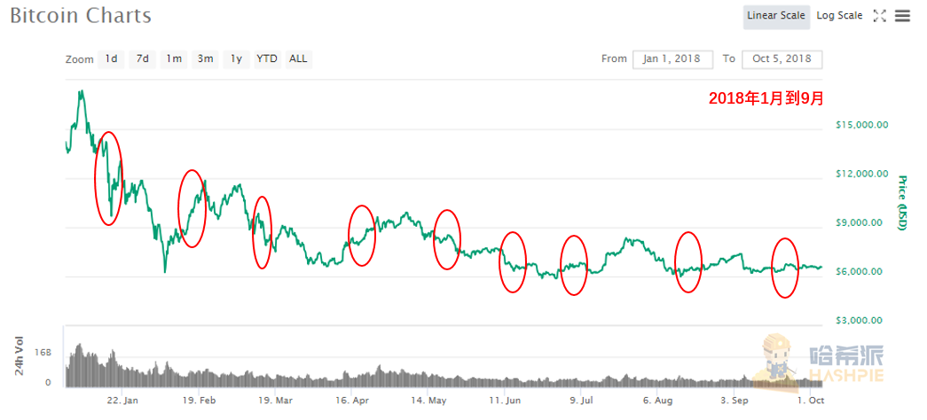 从具体数据来看,2018年2月和3月Cboe期货合约结算日前,比特币均表现出超10%的价格涨幅;其中三月份合约交割前后,和一月份一样出现了先跌后涨的价格走势,而二月份合约交割期间比特币价格则连日大涨,交割当周累积涨幅愈20%。不过从去年四月份开始,这种交割日即波动加大的趋势开始逐渐减弱,有时甚至出现直接横盘而过的情况,比如去年10月、今年2月以及3月等期货交割期间,BTC价格日内涨跌幅不超过1%。