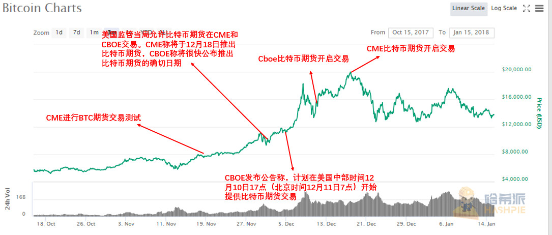 2017年年末比特币价格被疯狂推高并一举突破两万美元大关,过程中Cboe比特币期货的推出也有一记功劳。