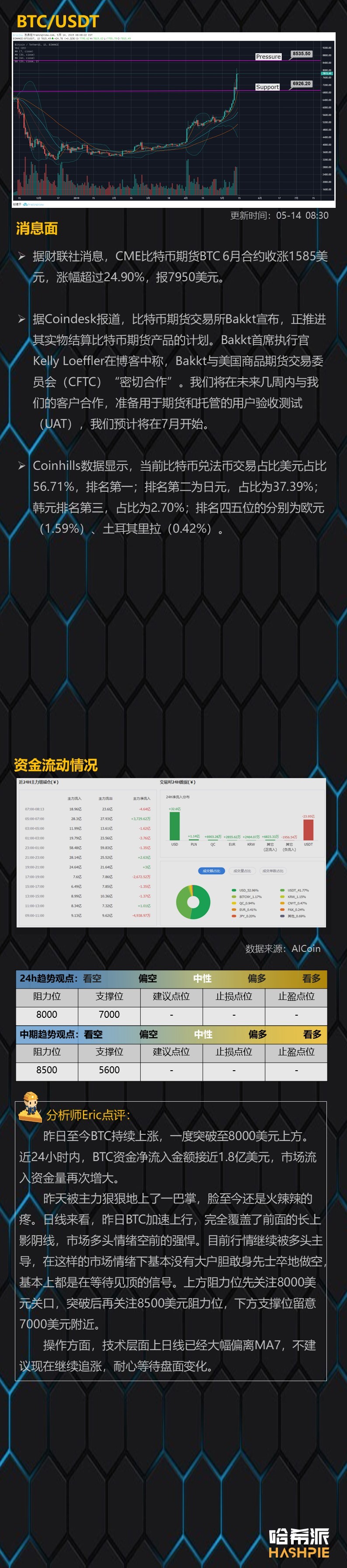 行情分析:Bakkt刺激行情加速,多头继续强势hashpai (30)in #bitcoin • 7 years ago 作者 | 哈希派分析团队 往期回顾:BTC本月首次放量下跌,阶段性顶部出现 ※回顾昨日行情分析、获取更多精彩内容,请关注哈希派公众号或点击阅读原文获取