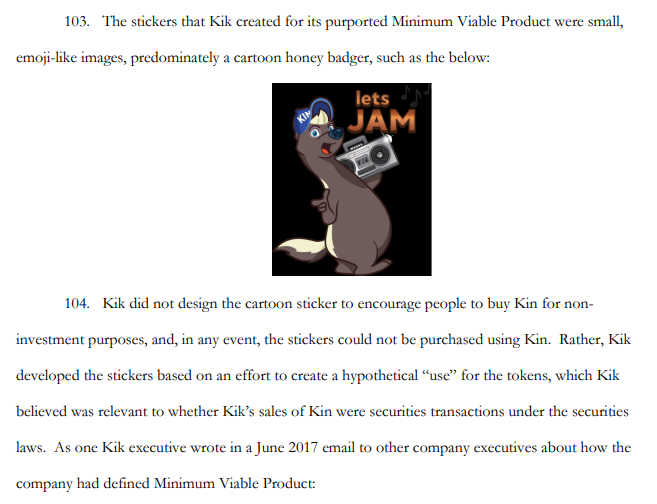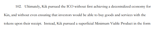简单来说就是,Kik明知道自己发行的代币属于证券范围也没有按规向SEC注册,并试图添加未开发完全的应用来让代币发售看起来合规。