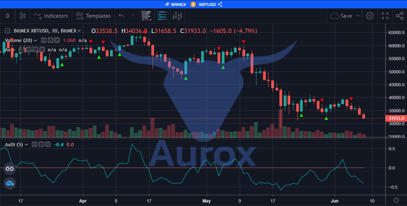 The Aurox Indicator is Red and The DI (Demand Index) Is Still Under The 0 Line. Will BTC Head Lower?