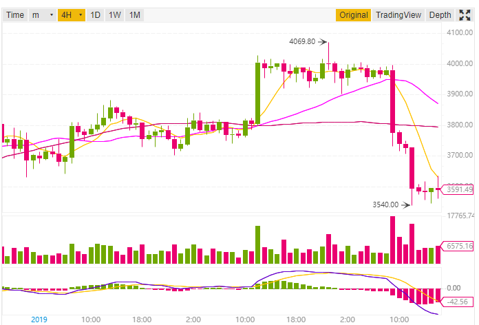 In this image we can see how dramatically Bitcoin dropped against the USDT pairing on Binance. It first dropped from around $4000 to $3800 and then did another few drops to $3500.