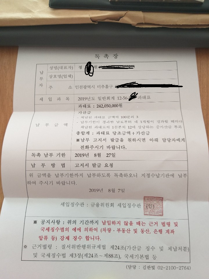 이건 당시 금감원 과태료 고지서 입니다 ㅎ