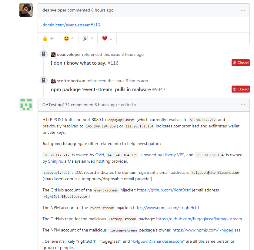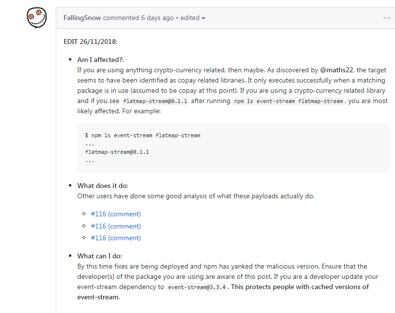 An open-source bitcoin wallet Copay and one of its modules widely used by other apps seems compromised by malicious dev.
