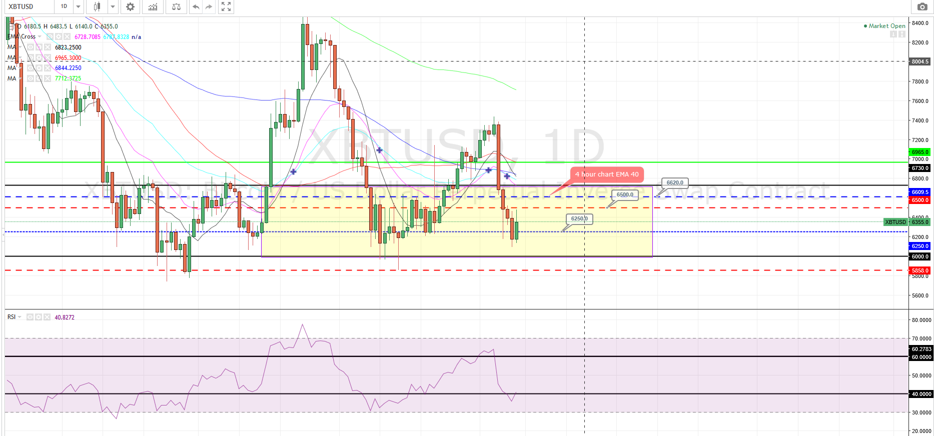 For the short therm BTC the playfeeld is between the 6000 and 6740 Today the btc can go up to the 6500 max 6620 there is the EMA 40 on 4 hour chart.For looking down 6250 when break the 6000/5858 Ta is no guarantee.