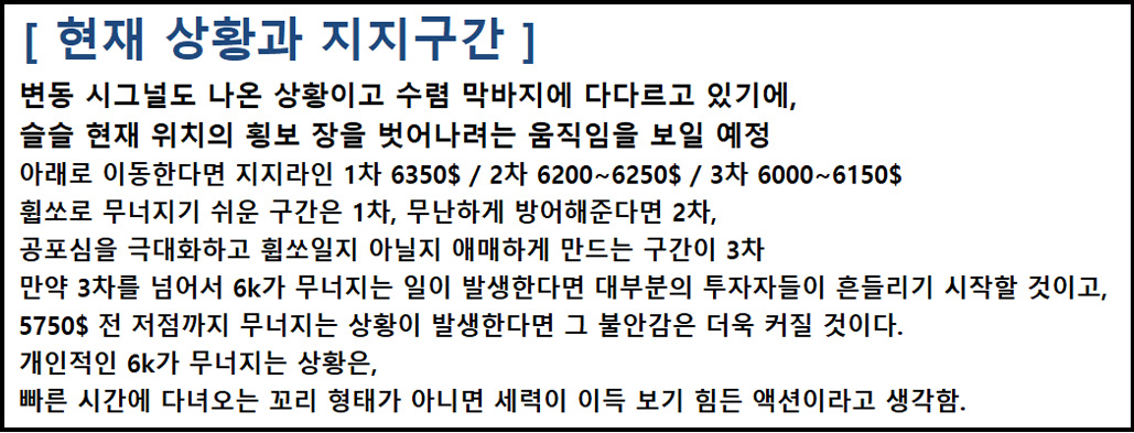 6800$이 무너지고 일봉 2개~3개 마감되기 전에 다시 올라오면 상황은 긍정적입니다.