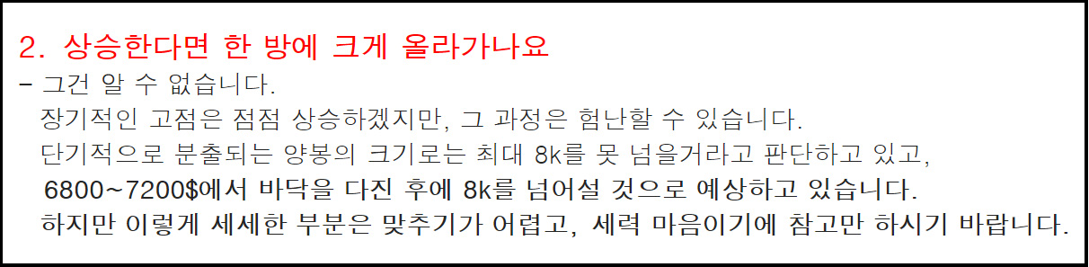 두 번째 분출의 최고점은 전 분석글에서 언급했듯이 8k를 넘어설 수도 있습니다.