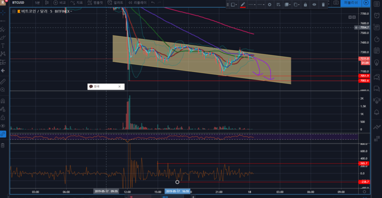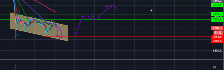 7천을 꺠지않고 두번째저점인 7051 사이에서 거래량이 터졌을때. 매수관점 1