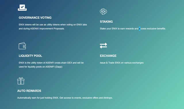 流動性池: ENIX是ASENIFI跨鏈DEX的實用代幣,將用於ASENIFI(Dapp)上的流動性池