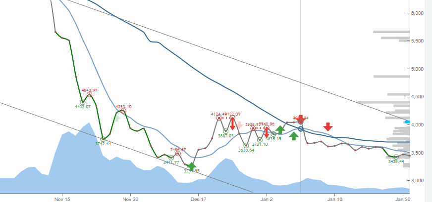 Close price at the end of the last trading day (Thursday, 31st Jan 2019) of the BTCUSD stock was $3 446.25. This is 0.64% less than the trading day before Wednesday, 30th Jan 2019.