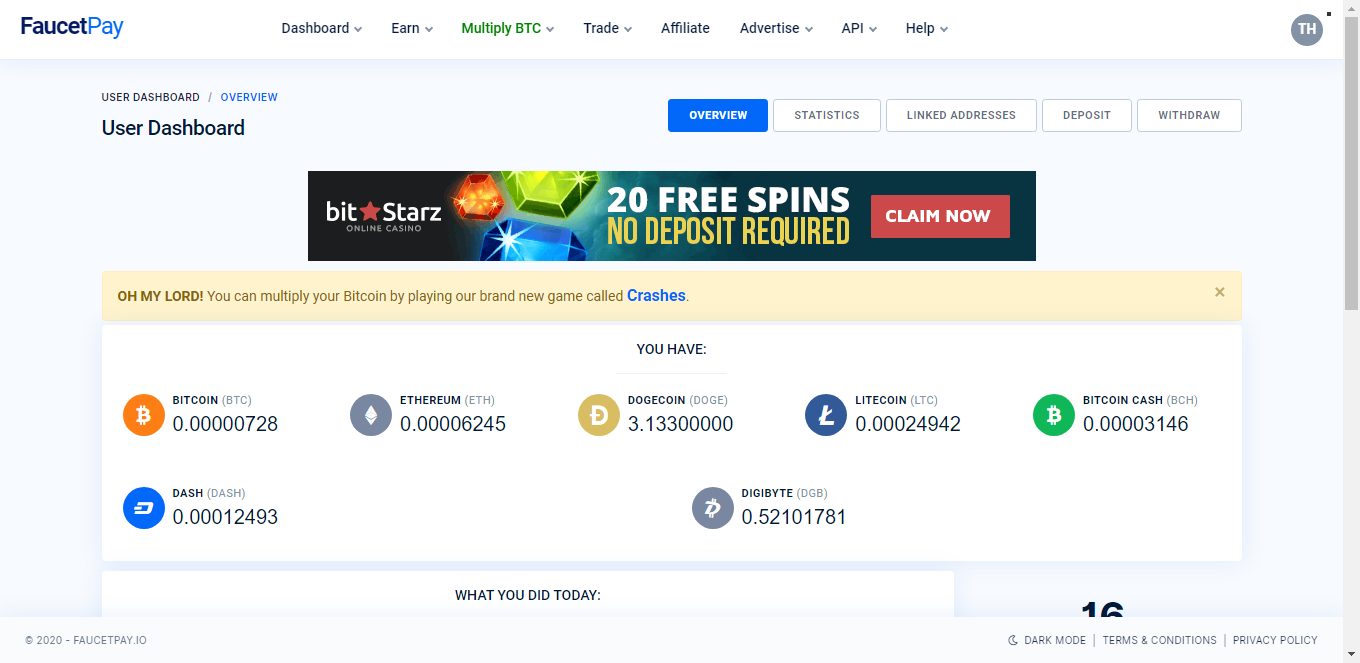 On top of that, Faucet Pay has PTC ads which in return earn you satoshi for your time spent viewing the ad as well as drawing traffic