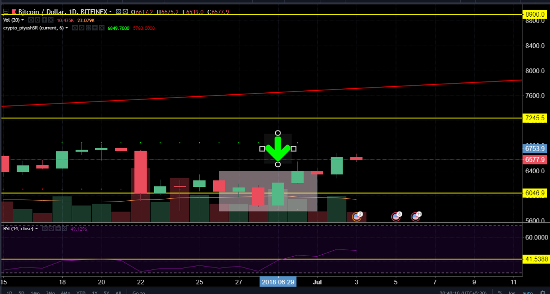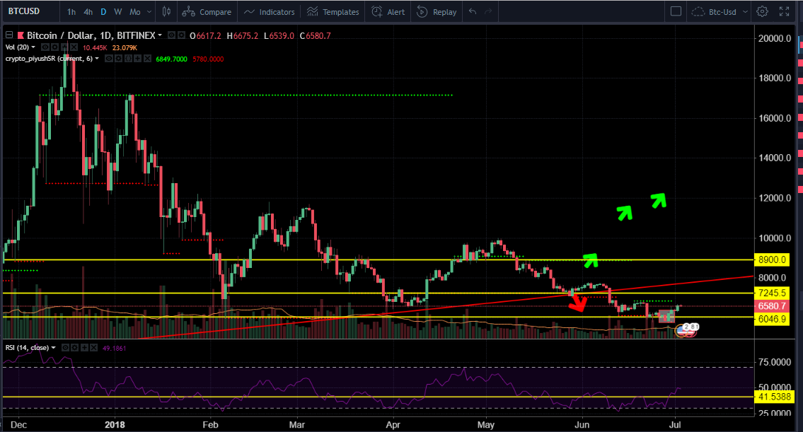 If #Bitcoin sustains above $6700, & sustains above $6500 for few Days then we can say that #Bitcoin Might go Up. If #Bitcoin Cross $7000, then might go to $7700 as well. People who are trading can use Stop loss at $5900.