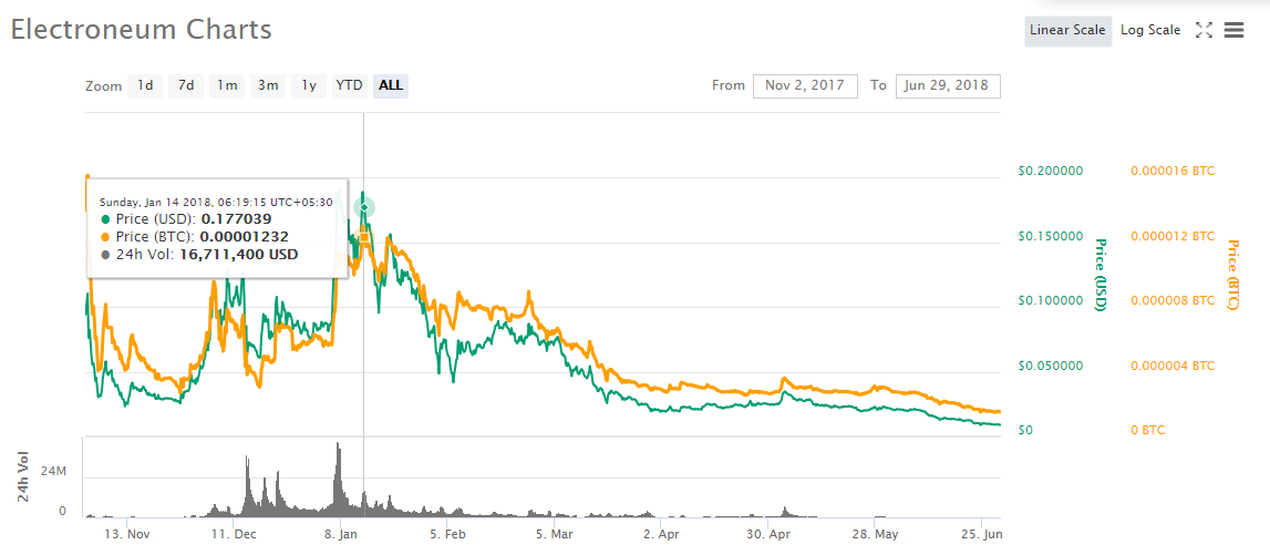#Electroneum a new cryptocurrency launched for Mobile Miners & To use as Instant Payment. Lot of People Invested in #ETN ICO, but some are still waiting for #Electroneum to go up. It was looking very promising Project but now trading at very low price of #0.008970 USD around #0.00000153 BTC.