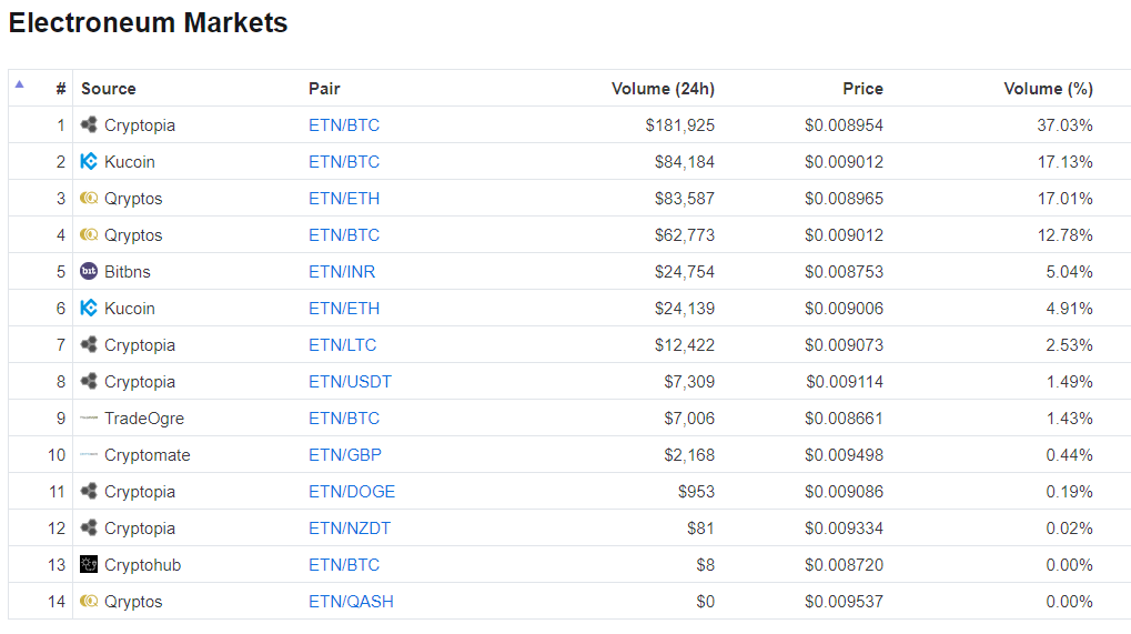 You can see in above image #Electroneum reached at highest price of #0.177 USD around #1200+ Satoshi, but after that just going down due o market correction as well. We can see in below image that lot #Exchanges already Listed #Electroneum.