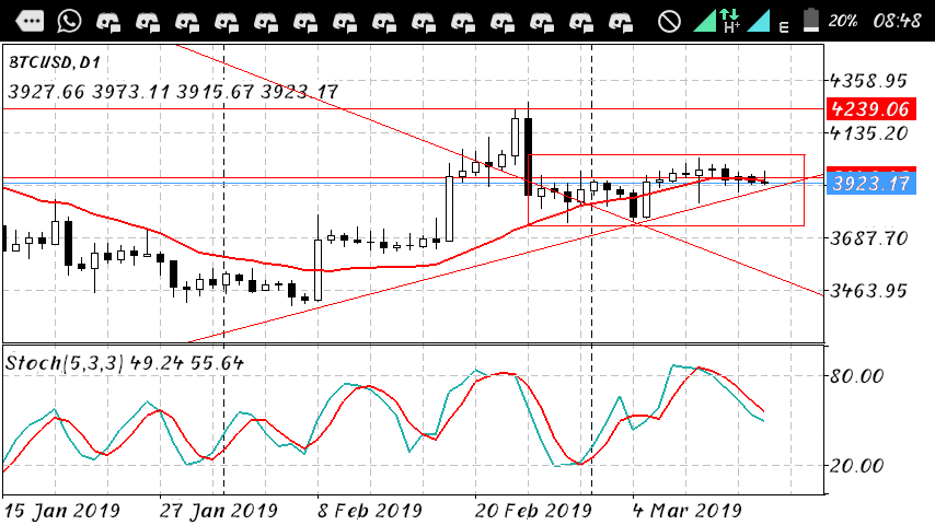 BTC has been ranging for the past 18days, as shown by the box in the chart above.