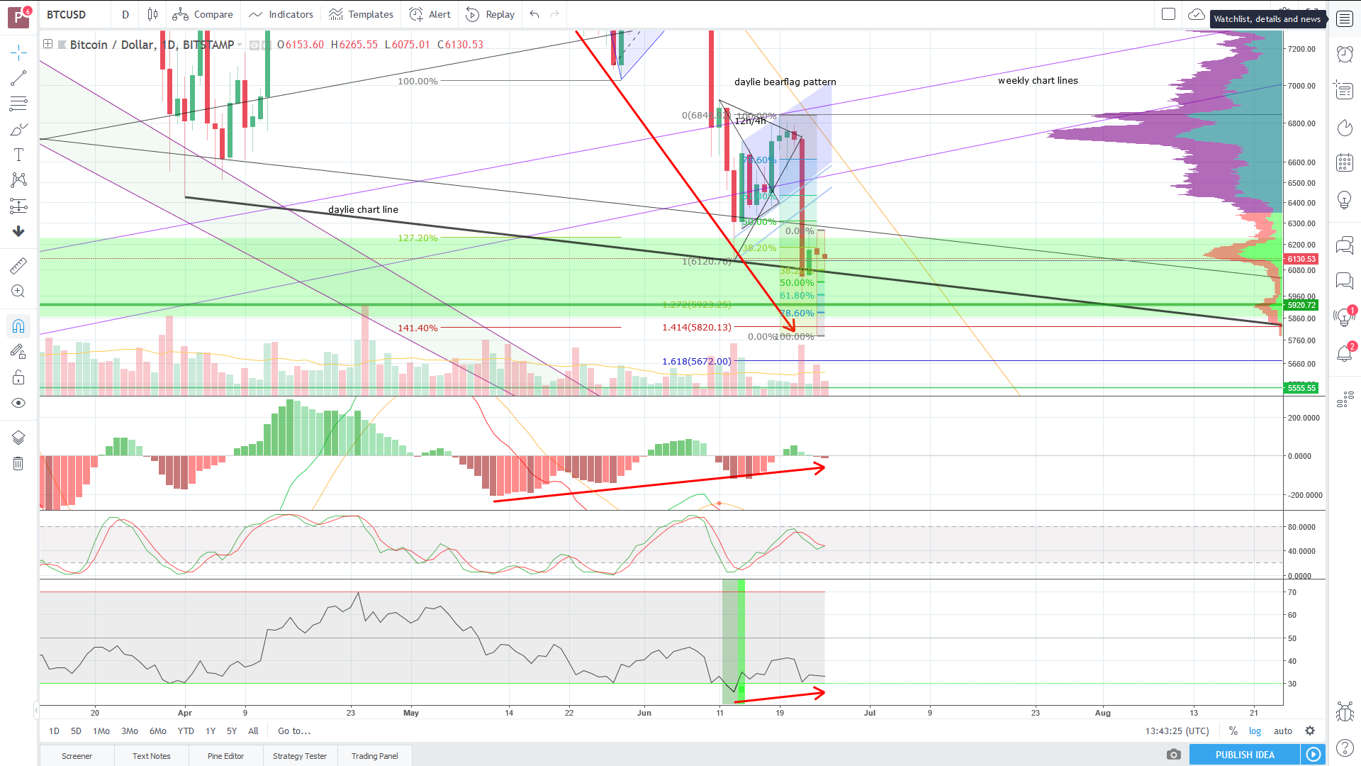 strong daylie divergences and cluster on the left side, that could implicate a longer consolidationtime following and maybe a preparing for a stronger bullsign.