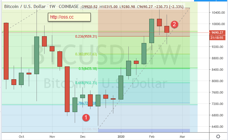 Bitcoin Update -- Feb 22, 2020rrhandle (25)in #bitcoin • 6 years ago A Bullish 3-Inside-Up in Dec signaled a move higher. A Bearish 3-Inside-Down candle formation is now forming. Bearish channel breakout. #btc #cryptos