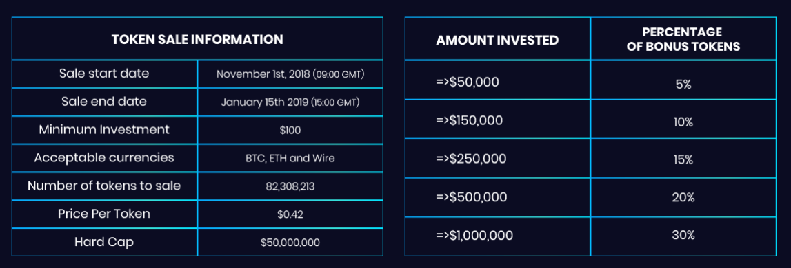In addition to the details listed above, any contributor who participates with an amount of greater than $50,000 (USD) will be entitled to bonus tokens. The tokens will be issued as a percentage of the initial tokens purchased by the contributor , and will be vested with the company for 9 months, with 1/3 release every quarter.