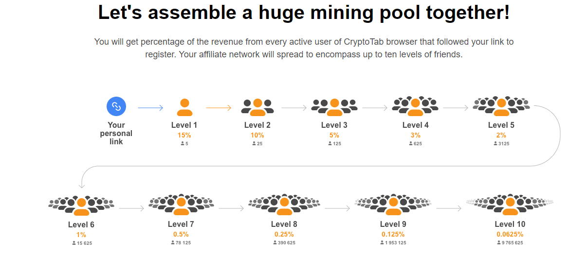 Share CryptoTab Browser with your friends and get additional % from their BTC revenue.