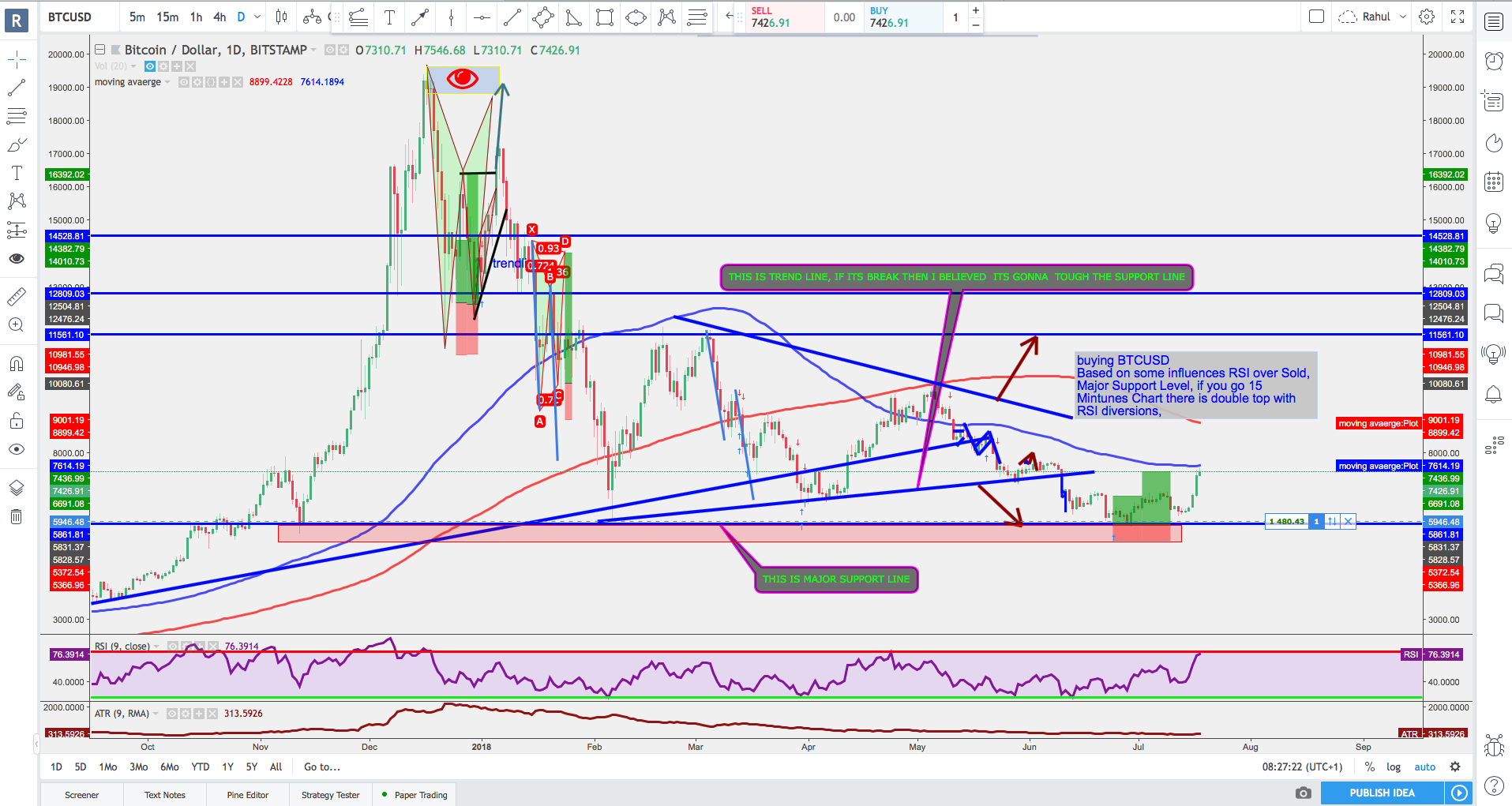 Based on some influences RSI over Sold, Major Support Level, if you go 15 Mintunes Chart there is double top with RSI diversions,