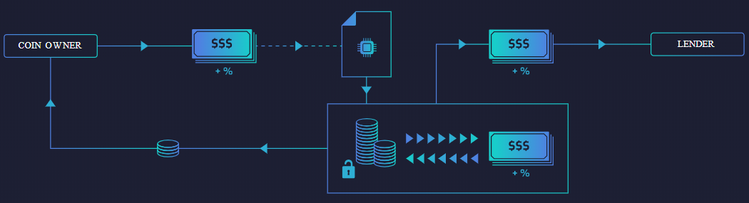 - Smart contracts regulate the procedures of blocking, returning or liquidating collateral assets.