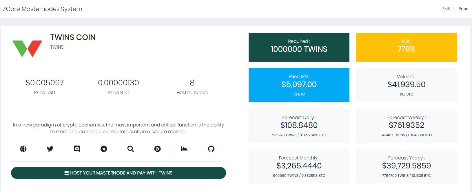 बेहतर सेवा, सुरक्षा और सुरक्षा जीत के लिए ।विन टीम ने zcore.cash टीम के साथ बातचीत की थी और अब इसे आधिकारिक तौर पर जीत टीम का समर्थन प्राप्त है। इससे भी अधिक, उपयोगकर्ता अपने मास्टर नोड्स को TWINS में भी होस्ट करने के लिए $ 2 / महीने के मामूली शुल्क का भुगतान कर सकते हैं।