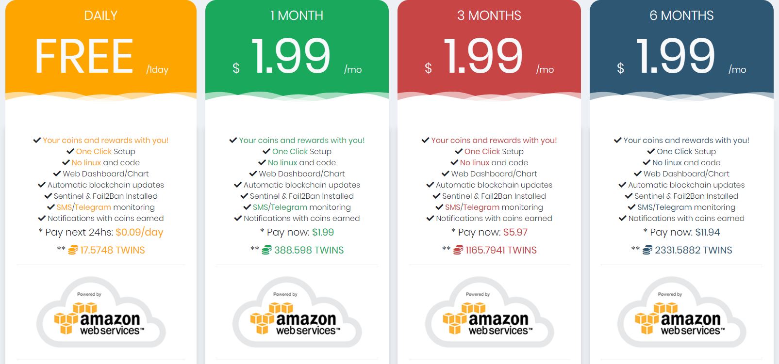 अगली स्क्रीन पर आपको ZCR सिक्के में कीमत मिलेगी लेकिन होस्टिंग शुल्क के भुगतान के लिए कई क्रिप्टो विकल्प होंगे, जिनमें TWSS शामिल है। शुल्क अग्रिम होगा, इसलिए मैं मासिक / 3 महीने के कार्यक्रम के लिए जाने का सुझाव दूंगा क्योंकि 6 महीने की योजना मूल्य वार में कोई बड़ा लाभ नहीं है।