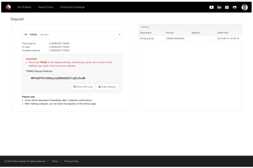 सामुदायिक विनिमय: https://new.capital/exchange/trade/BTC_TWINS