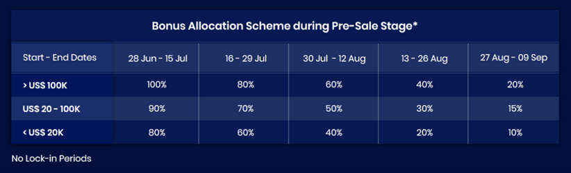 The bonus program on Pre-ICO is presented below