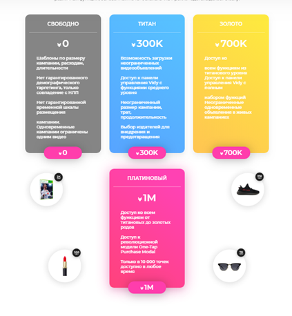For retaining advertising, you can earn VidyCoins. Vidy allows you to make a purchase with one click on ads. And VidyCoins tokens can also be used as an advertising budget for advertisers.