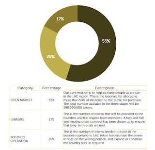 The first stage. Laccoin will have an initial stock of 390 million coins, 55% of which will be issued to the public at three different stages. In the first stage, 33% of the total number of tokens placed will be sold.