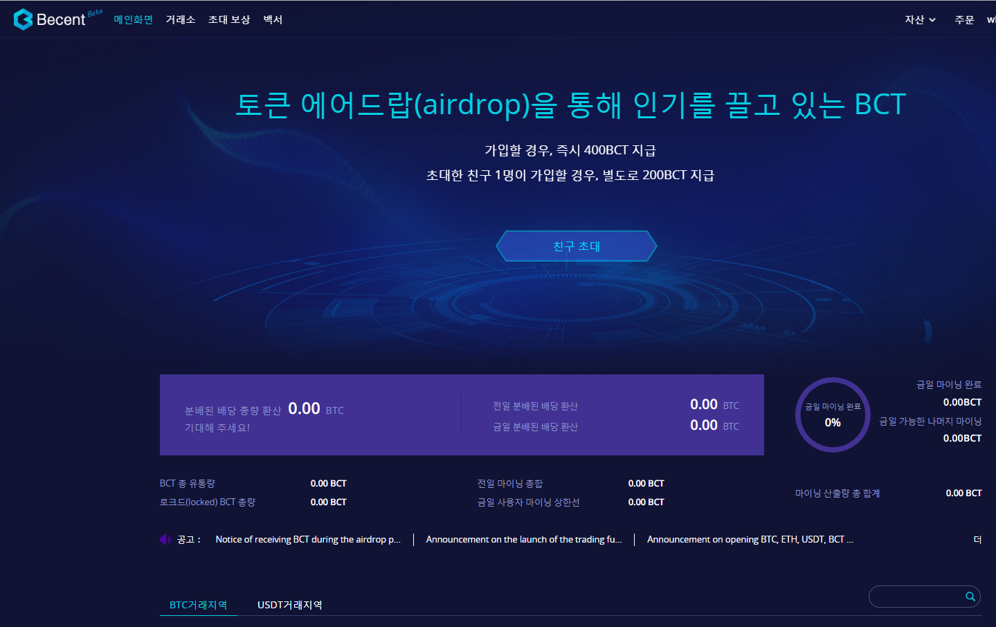 사전등록 주소 : https://www.becent.com/#/register?invite_code=5ipp