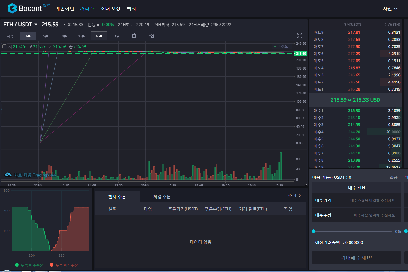 BTC/USDT, ETH/USDT, ETH/BTC는 사전초대 계정만 거래 테스트가 가능합니다.