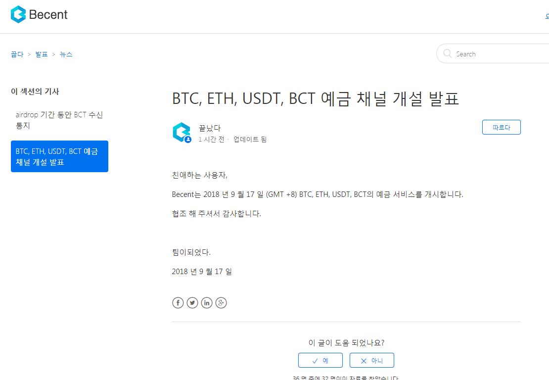 드디어 Becent가 거래소 지갑이 열렸습니다.