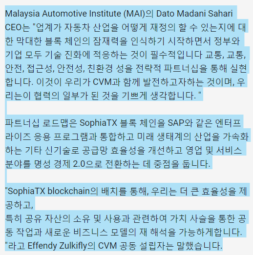 CVM은 소피아TX와 11월에 MOU를 맺었지요^^