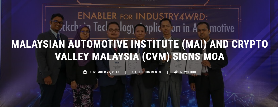 말레이시아 자동차 협회(MAI)는 크립토벨리 말레이시아(CVM)와 얼마전 MOA 를 맺었습니다.
