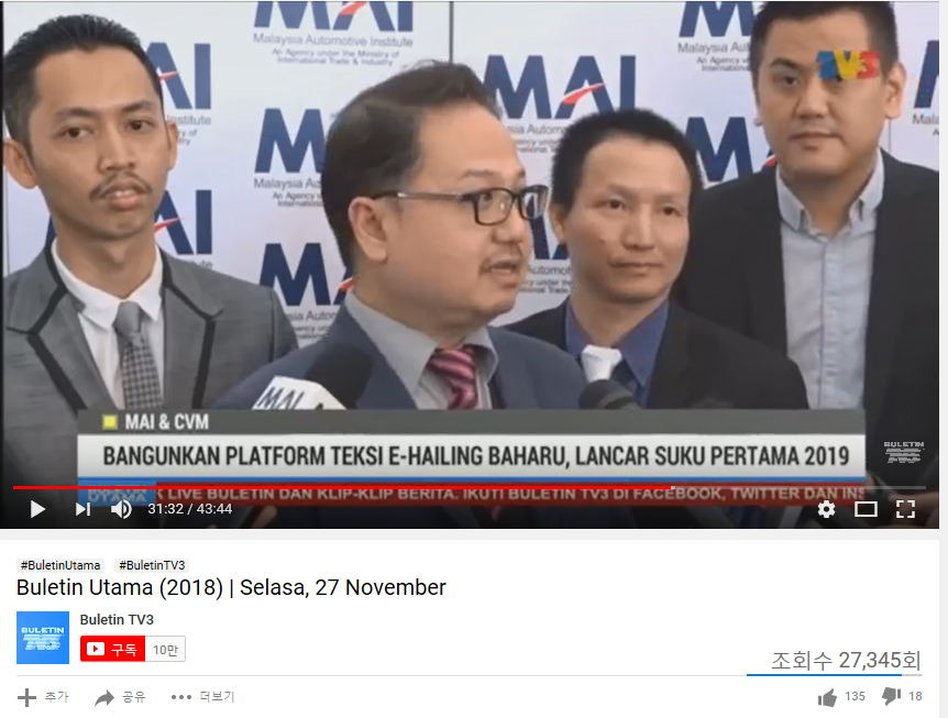 말레이시아 국영방송 뉴스에서도 방송되었다고 합니다