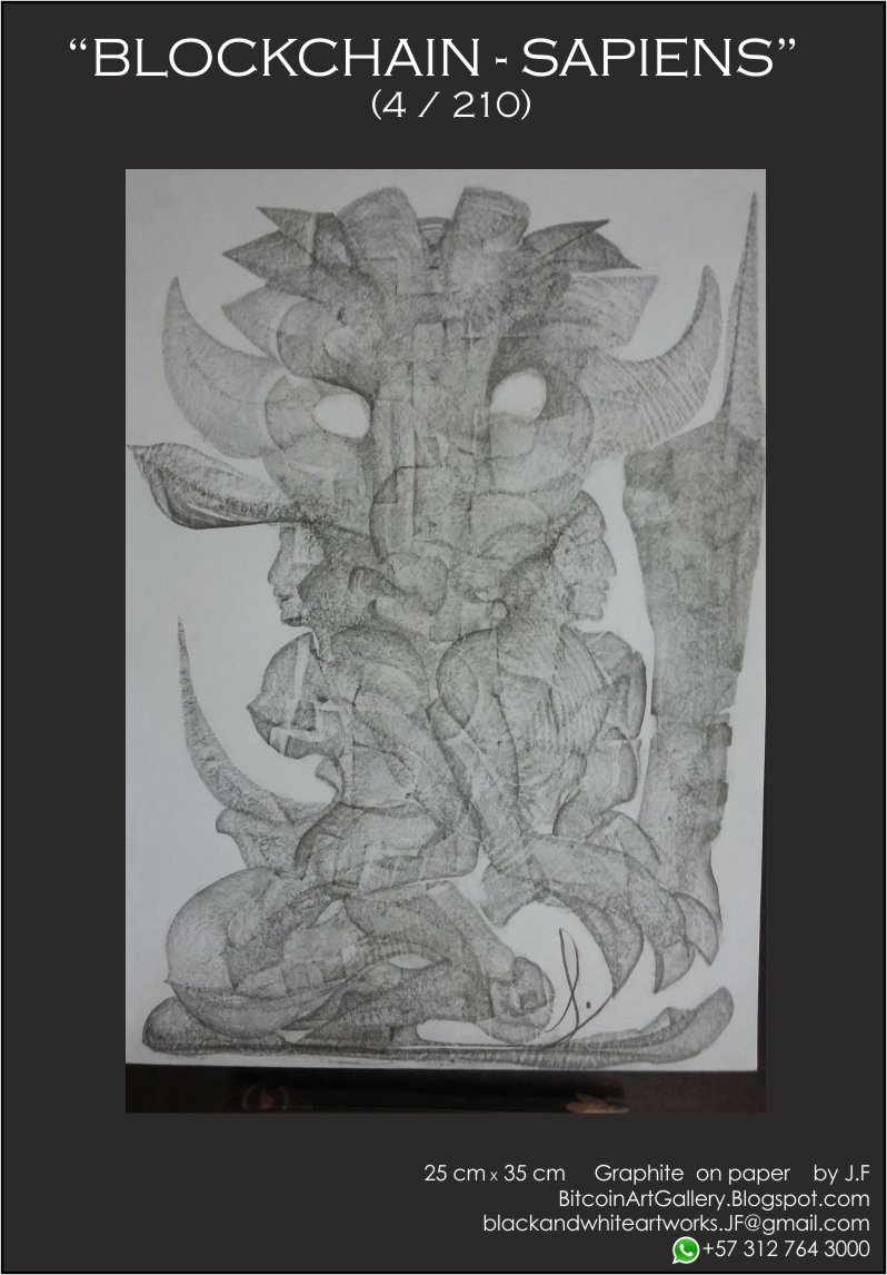 Inspired by these questions that are the limits of the philosophy I started working on these drawings in September 2018, I will continue one by one until I get to 210 "Blockchain-sapiens" and know the secret that keeps ...