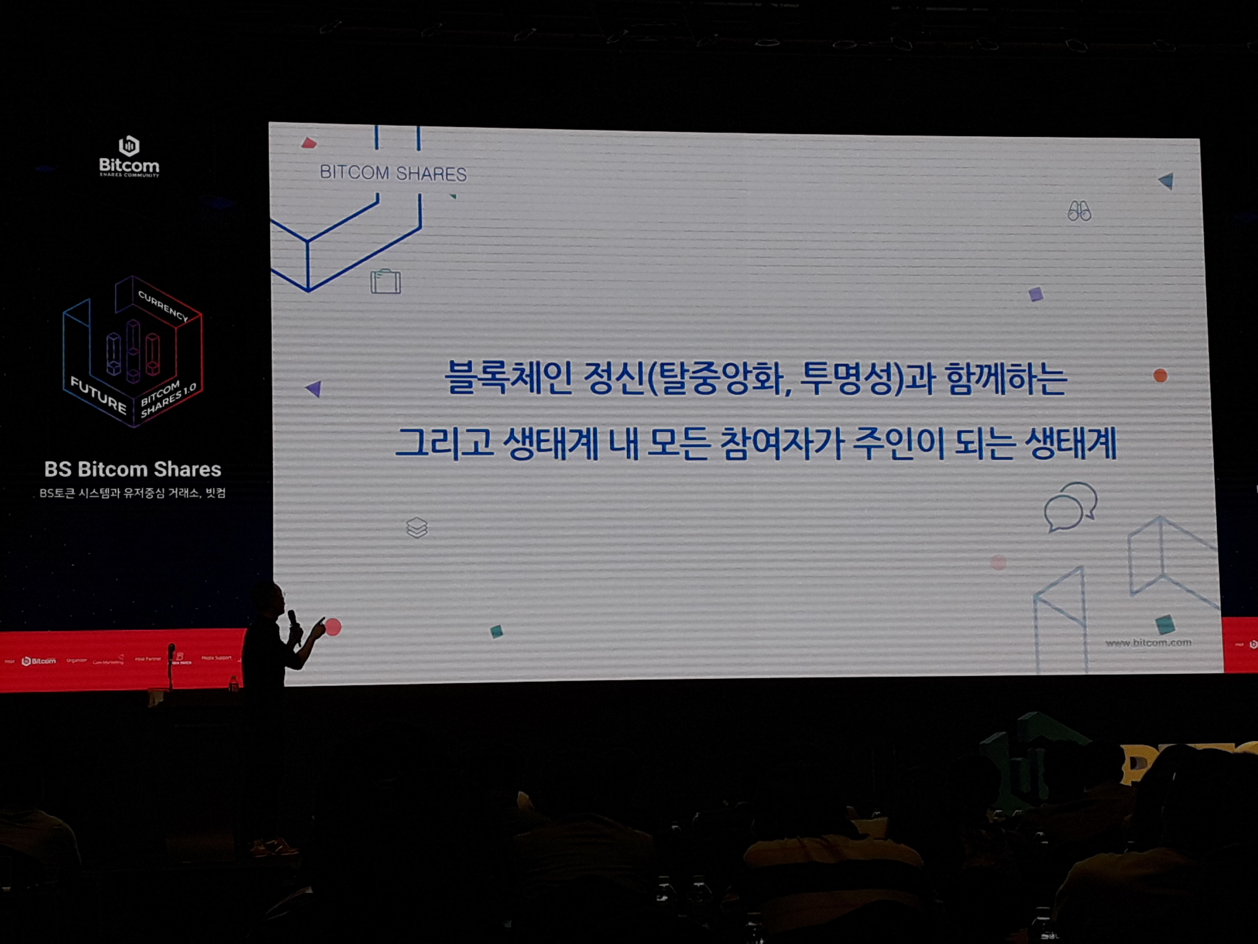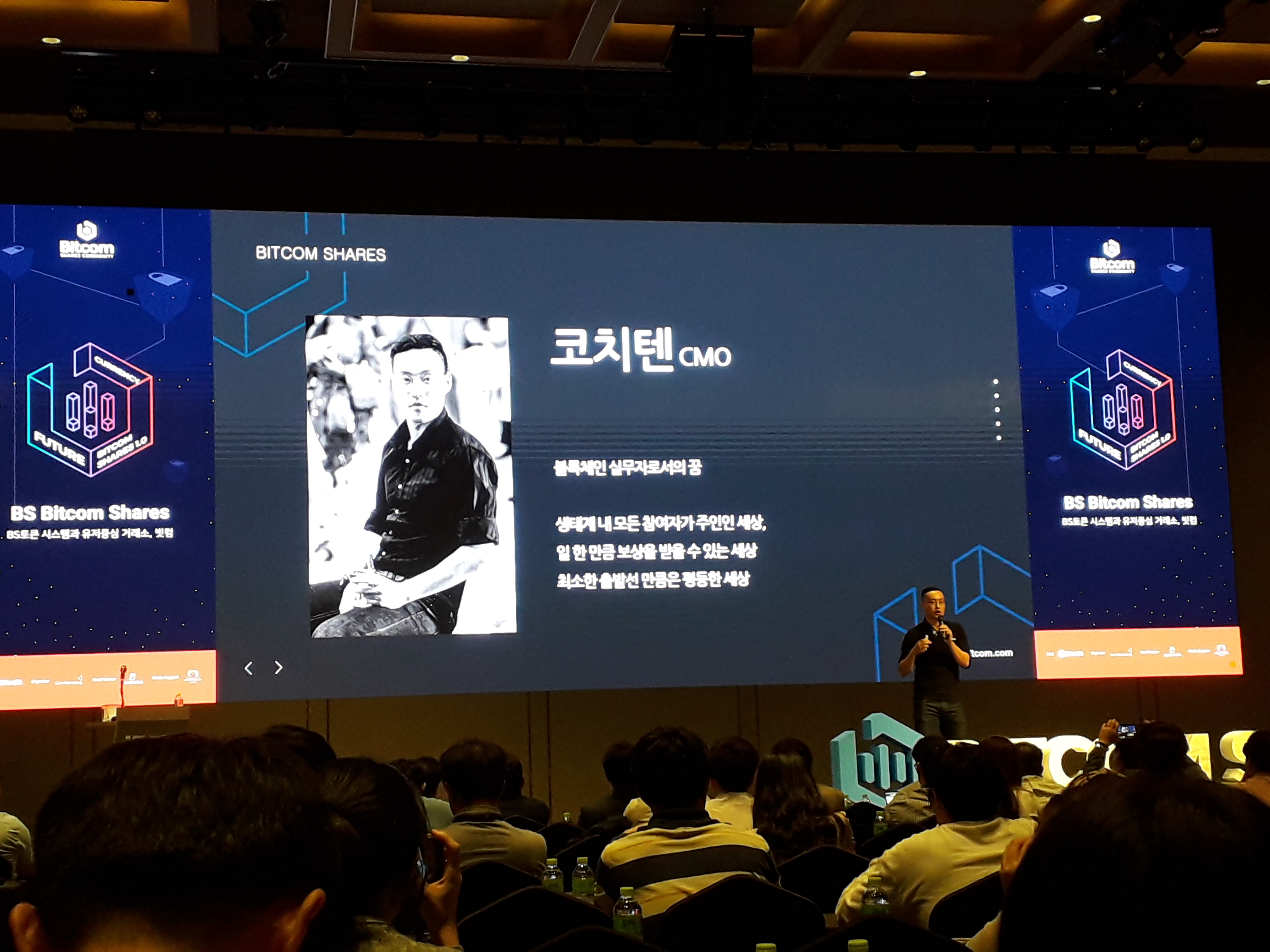 밋업이 시작했을때 BS토큰과 비트콤 거래소에 관련한 짧은 영상으로 시작했습니다.